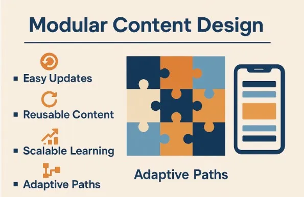 Modular Content Design structures learning into independent, reusable units. Each module is self-contained and can be consumed alone or combined into a larger learning path.