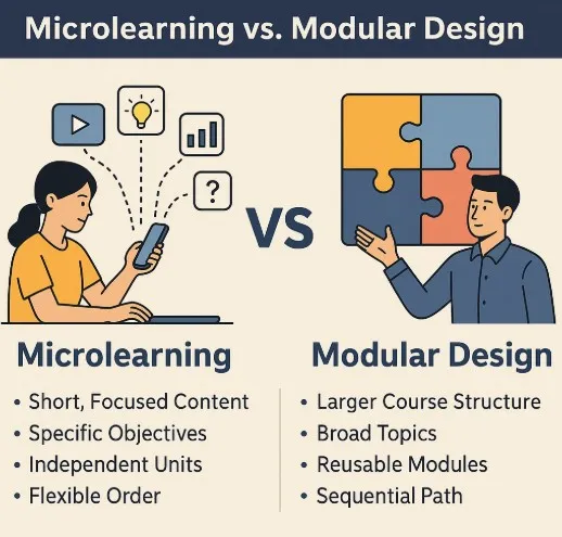 While microlearning focuses on content size and format, modular design focuses on structure and flow. But together, they’re a powerhouse.